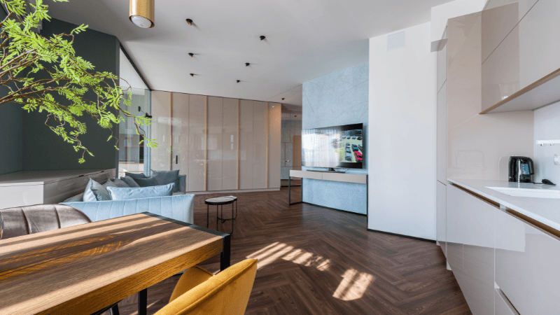 たとえば、明るい色のフローリングは白木やナチュラル系、濃い色のフローリングはダークブラウン系として見られることがあります。また、板幅が細いものと広いものでは、床面の見え方が変わります。