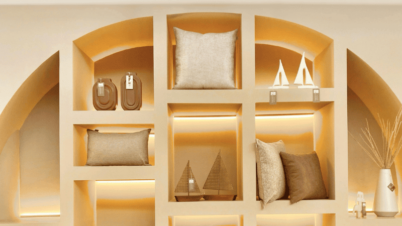 階段状の棚は、直線的な棚とは異なり、空間に変化をつけやすい形です。ただし、収納量だけを重視する場合は、通常の長方形の棚のほうが使いやすいこともあります。